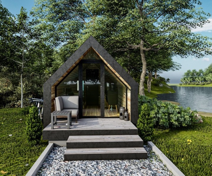 Kit Maison A-frame 18 Chaque modèle de mini-maison est conçu pour être monté en auto-construction, structure bois préfabriquée.