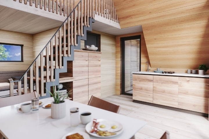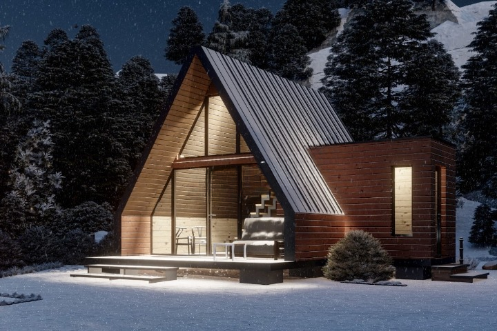 Kit Maison A-frame 38 Chaque modèle de mini-maison est conçu pour être monté en auto-construction, structure bois préfabriquée.
