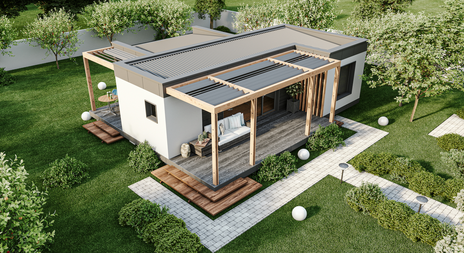 Maison modulaire flexible et compact, idéal pour un couple sans enfants.